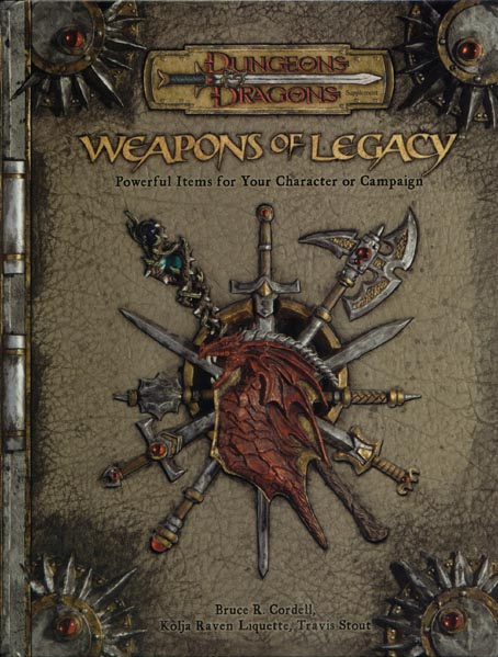 Item Code: #17862 Title: Weapons of Legacy Type: Accessory Author: Bruce R. Cordell, Kolja Raven Liquette, Travis Stout Published: 2005 Format: 224-page perfect-bound hardback book |
