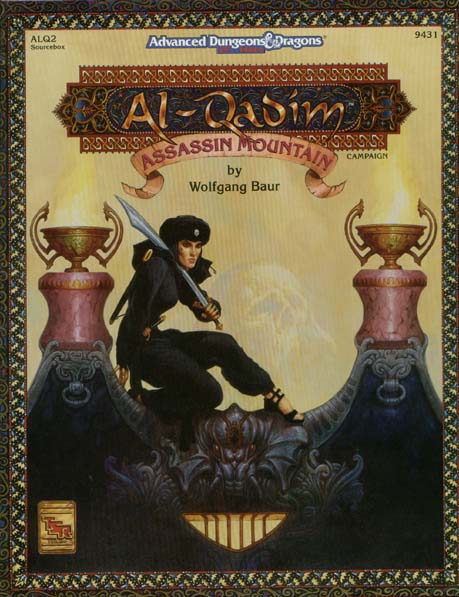 Item Code: #9431 (ALQ2) Title: Assassin Mountain Type: Adventure Author: Wolfgang Baur Published: 1993 Format: 64-page book, 32-page book, 6 cardstock accessory sheets, 4 loose five-hole punched Monstrous Compendium sheets, fold-out map |
