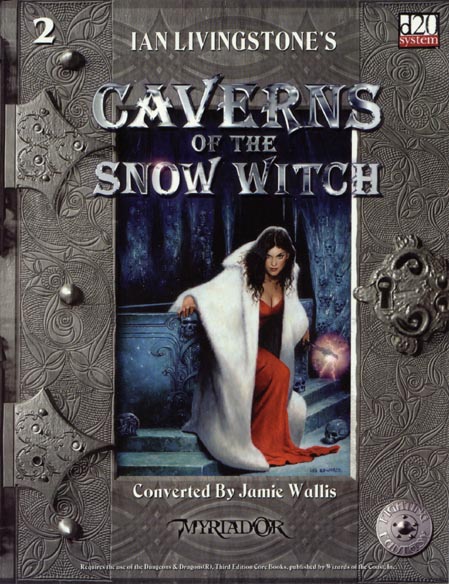 Item Code: #MYRFF02 Title: Caverns of the Snow Witch Type: Adventure For: 8th level characters Author: Jamie Wallis Published: 2003 Publisher: Myriador Format: 40-page book |