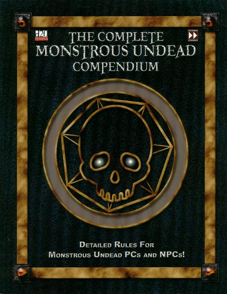 Item Code: #FAF2505 Title: The Complete Monstrous Undead Compendium Type: Accessory Published: 2003 Publisher: Fast Forward Entertainment Format: 128-page perfect-bound book |