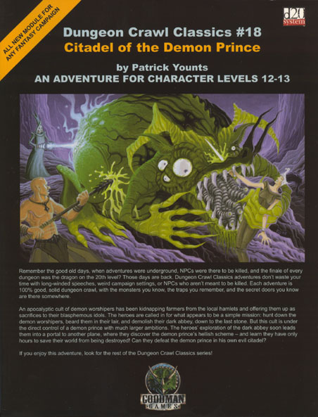 Item Code: #GMG5017 Title: Dungeon Crawl Classics #18: Citadel of the Demon Prince Type: Adventure For: 12th - 13th level characters Author: Patrick Younts Published: 2005 Publisher: Goodman Games Format: 64-page perfect-bound book |