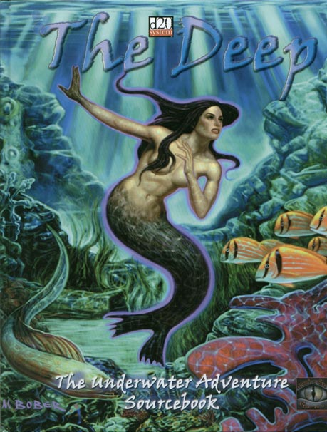 THE EARTH REVEALS ALL TO THE SKY... The land stretches above the shadowed veil of the sea, exposed to the air and sky. Though caves may reach far beneath the land's sun-flooded surface, none of these dry-earth depths can wrap around you, gripping so tight that your very chest cannot rise and fall to breathe. ...WHILE THE SEA KEEPS HER SECRETS. Beneath the waves, creatures monstrous and unfamiliar swim all around you in primal hunger, and they're all looking straight at you. Everything that swims here is food for something, and while this may be as true on land as in the sea, the sea is much more obvious in her hunger. In the sea, your focus is reduced to two critical questions: Will you feed? Or will you feed something else? The Deep is a 256 page aquatic campaign guide and sourcebook offering comprehensive rules for underwater adventuring. This resource provides you with all the material you need to start an aquatic adventure today. The Deep offers new underwater locales. places of interest, NPCs and adventure hooks designed to let your characters jump right in and start playing, including: