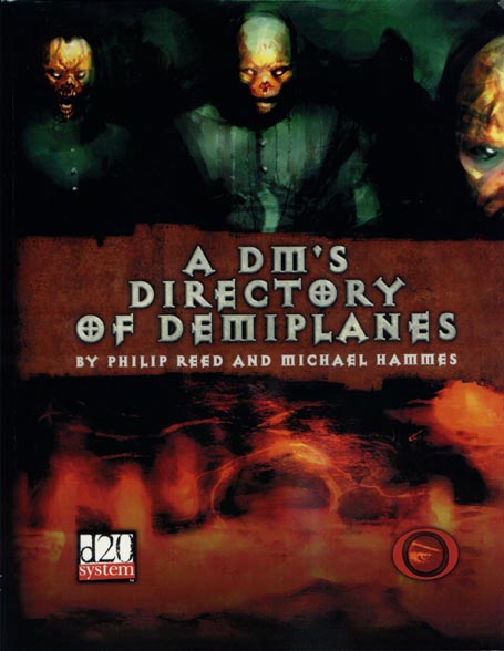 Title: A DM's Directory of Demiplanes Type: Accessory Author: Philip Reed and Michael Hammes Published: 2005 Publisher: Ronin Arts Format: 72-page perfect-bound book |