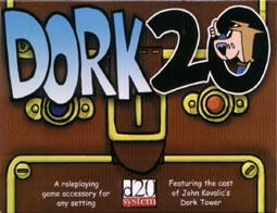 Once again, your character finds himself lying at the bottom of the Pit of Eternal Doom, waiting for the approaching Turbonium Dragon to munch on his tasty carcass. What do you do? a) Beg the mighty beast not to use you bones as toothpicks. b) Trust the kindly GM to bail you out. c) Spring your "Oh, the Humanity!" card on the dragon to keep him from saving against your cause fear spell. Then, when it has fled before your magnificent buffness, use your handy "Huzzah!" card to take 20 leaping out of the pit! Atlas Games comes to the rescue with the Dork20 Deck - 56 full-color cards illustrated by award-winning cartoonist John Kovalic! Dork20 Deck cards modify the standard d20 System rules, allowing characters to perform nigh-impossible deeds that turn your adventures into legend, and your game sessions into hilarious fun! The Dork20 Deck can be used with any d20 System roleplaying game. Version 3.5 |