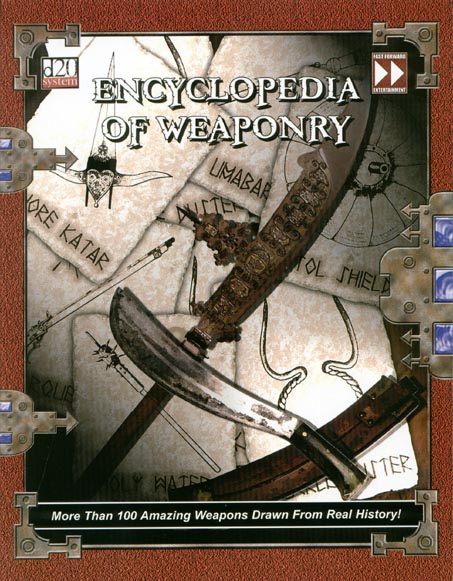 Tired of the same-old, same-old? Weapons aren't always pointy and easy to spot. They come in all shapes and sizes, from the tiny bagh nakh to huge polearms like the berdice and naginata, from the unsophisticated tooth spear to the complex wheel lock rifle. Encyclopedia of Weaponry gives you tools from throughout mankind's long history that you can put in the hands of your greatest heroes and deadliest villains. Suddenly your campaign just became lots more dangerous! This 128-page compendium is filled with a wide assortment of incredible weapons from all over the world, each of which has been tested in the hear of battle! Each entry provides an accurate illustration, historical details on the weapon, information about its use in fantasy campaigns (including which races like to use them), d20 statistics and even details about the most popular magical versions of the weapon! So you think you've got the biggest stick? Encyclopedia of Weaponry finally brings artillery and siege weapons into the game, from the millennia-old catapult to the heavy cannon of the middle-ages and Renaissance. We've also included detailed rules on how to use these weapons in your games, so now you, too, can bring down the walls of your worst opponent's castle with your own "big guns!" About the Authors: Fast Forward Entertainment assembled an incredibly talented group of authors, including winners of the prestigious Origins Award, to bring these historical weapons to life. Together, Sean Everette, B. D. Flory, Chris Hartford, Kurt Hausheer, Steve Sullivan, Chris Trossen, James M. Ward, and Jakko Westerbeke have crafted a book that will bring Dungeon Masters and Players alike hundreds of hours of enjoyment, and give Player Characters the toys they want and need! |