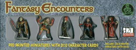 Includes 5 fully painted, generic fantasy miniatures and 15 d20 system