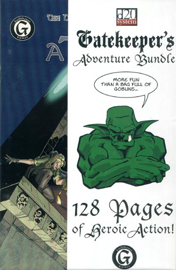 Item Code: #GHS1010 Title: Gatekeeper's Adventure Bundle Type: Adventure Published: 2001 Publisher: Guildhouse Games Format: 4 32-page books w/wrap |