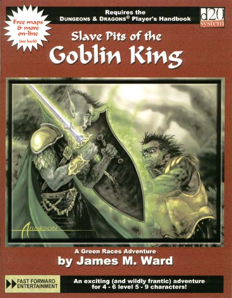 Item Code: #FAF2003 Title: Slave Pits of the Goblin King Type: Adventure For: 4-6 characters, levels 5-9 Author: James M. Ward Published: 2001 Publisher: Fast Forward Entertainment Format: 48-page book |