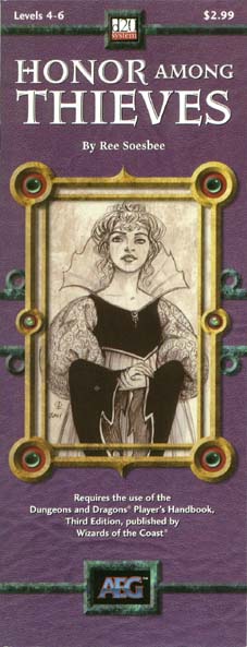 Item Code: #AEG8326 Title: Honor Among Thieves Type: Adventure For: 4th-6th level characters Author: Ree Soesbee Published: 2001 Publisher: Alderac Entertainment Group Format: 16-page book |