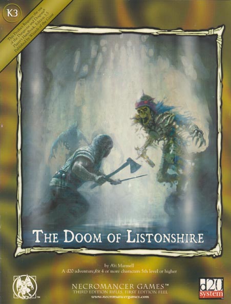 Item Code: #K&C8003 (K3) Title: The Doom of Listonshire Type: Adventure For: 4 or more characters, levels 5 and up Author: Ari Marmell Published: 2005 Publisher: Necromancer Games / Kenzer & Company Format: 96-page pefect-bound book |