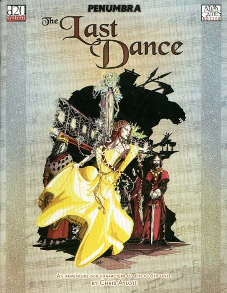 Item Code: #AG3208 Title: The Last Dance Type: Adventure For: 4th-6th level characters Author: Chris Aylott Published: 2001 Publisher: Atlas Games Format: 40-page book |