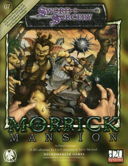 Item Code: #WW8378 (G7) Title: Morrick Mansion Type: Adventure For: 4-6 characters, levels 3-5 Author: Patrick Lawinger Published: 2003 Publisher: Necromancer Games Format: 56-page book |