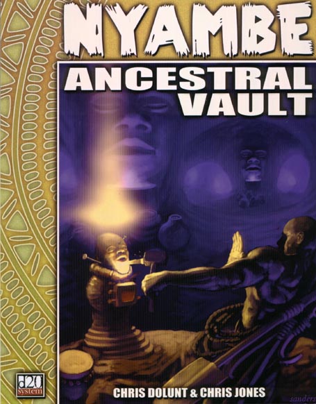 Item Code: #AG3702 Title: Nyambe: Ancestral Vault Type: Accessory Author: Chris Dolunt & Chris Jones Published: 2003 Publisher: Atlas Games Format: 96-page perfect-bound book |