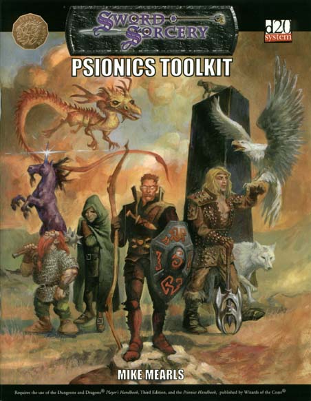 rolled up. You've picked out your first adventure. Now what? The Psionics Toolkit provides you with resources and tools needed to incorporate psionic powers into your fantasy campaign. Whether you're starting as 1st-level psions or you've just finished defeating the dark elf queen in her fortress with your 13th-level paladin, the Psionics Toolkit has something for everyone! Featuring new psionic monsters (including a Psionic Dragon), interesting psionic characters, new prestige classes (including the Beastmaster), a new cleric domain, new organization, new magic items, the Psionics Toolkit contains all of the "crunchy bits" you'll need to expand your campaign. But, more importantly, the Psionics Toolkit contains IDEAS. Plot hooks, adventure ideas, character backgrounds and motivations, methods for developing psionics in existing characters, as well as an extensive checklist of questions to ask yourself when adding the power of the mind to your fantasy world. |