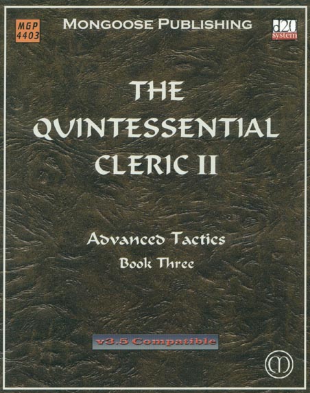 Item Code: #MGP4403 Title: The Quintessential Cleric II Type: Accessory Author: Patrick Younts Published: 2004 Publisher: Mongoose Publishing Format: 128-page perfect-bound book |