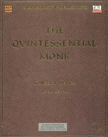 Item Code: #MGP4007 Title: The Quintessential Monk Type: Accessory Author: Patrick Younts Published: 2002 Publisher: Mongoose Publishing Format: 128-page perfect-bound book |
