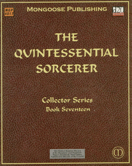 Item Code: #MGP4017 Title: The Quintessential Sorcerer Type: Accessory Author: Patrick Younts Published: 2003 Publisher: Mongoose Publishing Format: 128-page perfect-bound book |