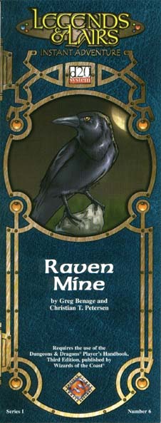 Item Code: #DD06 Title: Raven Mine Type: Adventure For: 4-6 characters, levels 5-7 Author: Greg Benage and Christian T. Petersen Published: 2001 Publisher: Fantasy Flight Games Format: 16-page book |