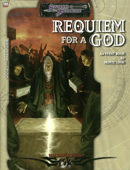 Item Code: #WW16120 Title: Requiem for a God Type: Accessory Author: Monte Cook Published: 2002 Publisher: Malhavoc Press Format: 64-page book |