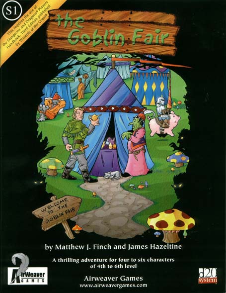 Item Code: #AWR001 (S1) Title: The Goblin Fair Type: Adventure For: 4-6 characters, levels 4-6 Author: Matthew J. Finch and James Hazeltine Published: 2002 Publisher: AirWeaver Games Format: 48-page book |