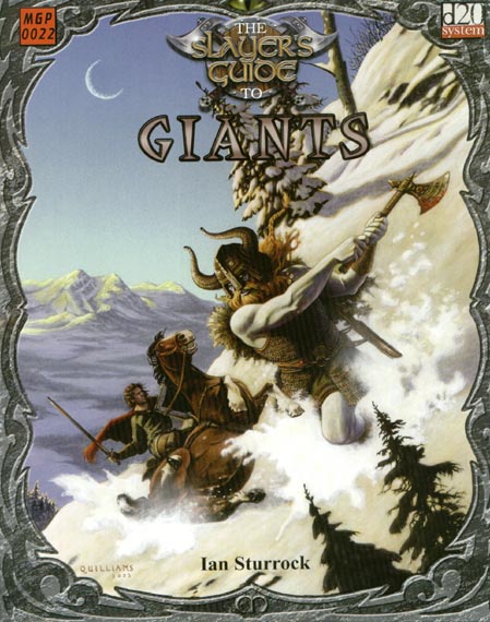 Item Code: #MGP0022 Title: The Slayer's Guide to Giants Type: Accessory Author: Ian Sturrock Published: 2003 Publisher: Mongoose Publishing Format: 128-page perfect-bound book |