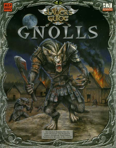 Item Code: #MGP0002 Title: The Slayer's Guide to Gnolls Type: Accessory Published: 2001 Publisher: Mongoose Publishing Format: 32-page book |
