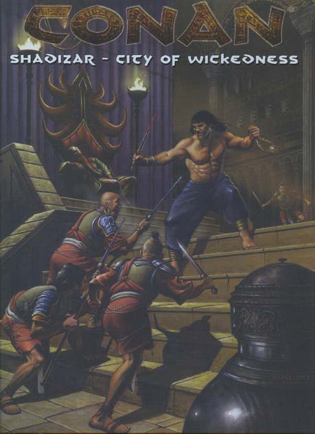 Item Code: #MGP7708 Title: Conan: Shadizar - City of Wickedness Type: Accessory Published: 2005 Publisher: Mongoose Publishing Format: 96-page perfect-bound book, 2 32-page books, 5 fold-out maps, cardstock sheet NPC reference card (8 cards total), 1 cardstock counter sheet (72 counters total) |