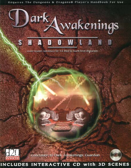 Giliath coughed, spitting out the foul taste of the air. I reached down to pass him a water-skin and it was then that I noticed Alvyd was missing. Before I could say a word, the stillness of the air was broken by a shrill scream from the direction of the tower. The fool had gone ahed without us and I dreaded to learn what fate had befallen him... From the Journals of Naedath, Mage of the City of Quorull. Dark Awakenings: Shadowland is the conclusion to Dark Awakenings: Guardian A d20 adventure for 4-6 characters of Levels 3-4 BONUS CD-Rom containing;