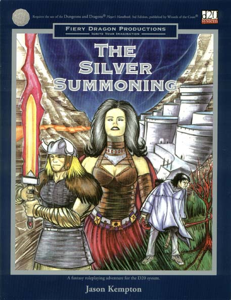 Item Code: #FDP1001 Title: The Silver Summoning Type: Adventure For: 5th - 7th level characters Author: Jason Kempton Published: 2001 Publisher: Fiery Dragon Productions Format: 44-page book w/cardstock sheet of counters (79 total) |