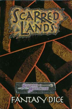 With the release of the Scarred Lands, fantasy fans have found an exciting world to explore. It is a world left in peril by the fickle hand of the Titans and their primal power. It is also a realm full of possibilities for the heroes who brave the terrors left by the fallen gods and discover might magics unearthed by the Titanswar. FANTASY DICE FOR THE D20 SYSTEM Sword and Sorcery items are published under the Open Gaming License and are 100% compatible with with 3rd-Edition rules and the D20 System. This box contains a complete set of dice prefect for use in your 3rd-Edition D20 fantasy campaign. It also comes with a felt bag emblazoned with the Scarred Lands logo. Contents: 1 Twenty-Sided Die, 2 Ten-Sided, 1 Twelve-Sided, 1 Eight-Sided, 3 Six-Sided, 1 Four-Sided and 1 Felt Dice Bag. |