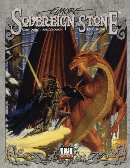 Item Code: #WSP0001 Title: Sovereign Stone Campaign Sourcebook (3.5 Edition) Type: Accessory Published: 2005 Publisher: White Silver Publishing, Inc. Format: 224-page perfect-bound book |