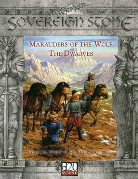 Item Code: #SVP3008 Title: Sovereign Stone: Marauders of the Wolf: The Dwarves Type: Accessory Author: James M. Ward & Michael Lichucki Published: 2003 Publisher: Sovereign Press Format: 144-page perfect-bound book |