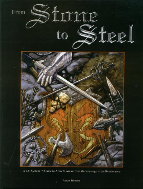 Many games become limited by our narrow views of what fantasy is, and can be. 'From Stone to Steel' is a book of weaponry and armor, but it is also an examination of history and culture. From age to age, every culture has approached similar ends with its own unique perspective. 'From Stone to Steel' is not merely a simple list of items, but rather an explanation of their use, their cultural significance, even their drawbacks. Besides weapons and armor, 'From Stone to Steel' contains new feats, new skills, new prestige classes, and new game mechanics. Through each chapter, topics like tactics, special materials, training, and culture are discussed, so that they can be understood and placed in any campaign world. And though these items are based in history, suggestions are made for their inclusion in a fantasy world. You'll even find items of myth, fantastic construction materials, new spells to augment weapons and armor, and even fantasy racial items (based, where possible, on myth or legend). From stone-age primitives to the height of the Renaissance, history is in your hands. 'From Stone to Steel' - Never look at d20 gaming the same way again! |