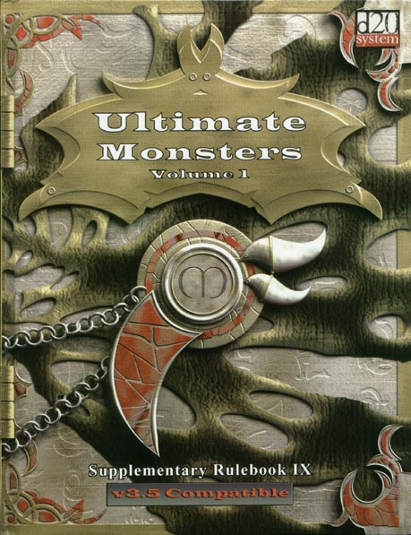 Item Code: #MGP9009 Title: Ultimate Monsters Volume 1 Type: Accessory Published: 2003 Publisher: Mongoose Publishing Format: 256-page perfect-bound hardback book |