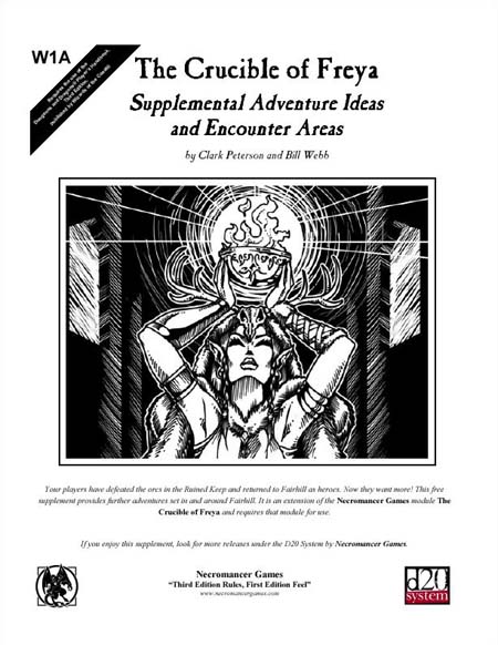 Title: The Crucible of Freya: Supplemental Adventure Ideas and Encounter Areas Type: Adventure Author: Clark Peterson and Bill Webb Published: 2001 Publisher: Necromancer Games Format: 23-page PDF file