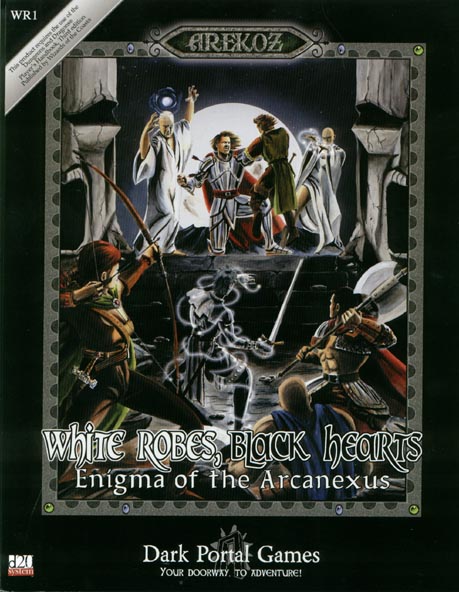Item Code: #DKP001 (WR1) Title: White Robes, Black Hearts: Enigma of the Arcanexus Type: Adventure For: 4-6 characters, levels 3-5 Author: Robert Blezard, Tony Bounds and Darrin Drader Published: 2003 Publisher: Dark Portal Games Format: 112-page perfect-bound book |