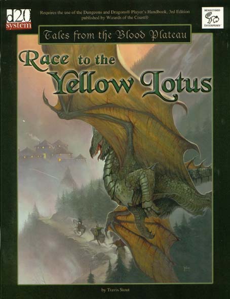 Item Code: #MKY1116 Title: Race to the Yellow Lotus Type: Adventure For: 4th-5th level characters Author: Travis Stout Published: 2002 Publisher: MonkeyGod Enterprises Format: 48-page book |