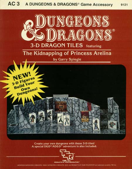 Item Code: #9121 (AC3) Title: 3-D Dragon Tiles featuring The Kidnapping of Princess Arelina Type: Accessory Author: Garry Spiegle Published: 1984 Format: 8-page book, 8 cardstock sheets |