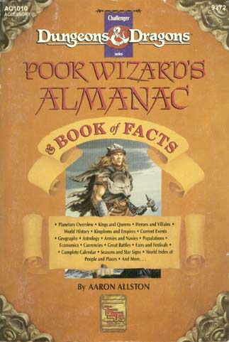 Item Code: #9372 Title: Poor Wizard's Almanac & Book of Facts Type: Accessory Author: Aaron Allston Published: 1992 Format: 240-page perfect-bound book, fold-out map |