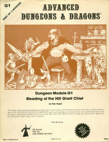 Item Code: #9016 (G1) Title: Steading of the Hill Giant Chief Type: Adventure Author: Gary Gygax Published: 1978 Format: 8-page book |