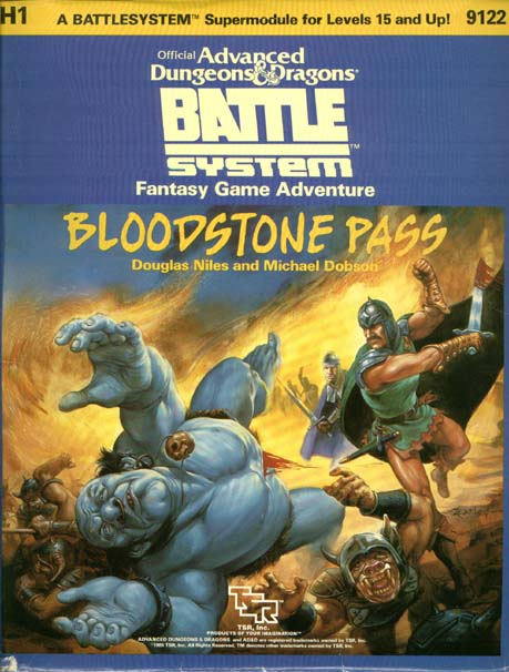 Item Code: #9122 (H1) Title: Bloodstone Pass Type: Adventure Author: Douglas Niles and Michael Dobson Published: 1985 Format: 32-page book, 24-page book, 104 die-cut counter, 12 3-D fold-up sheets |