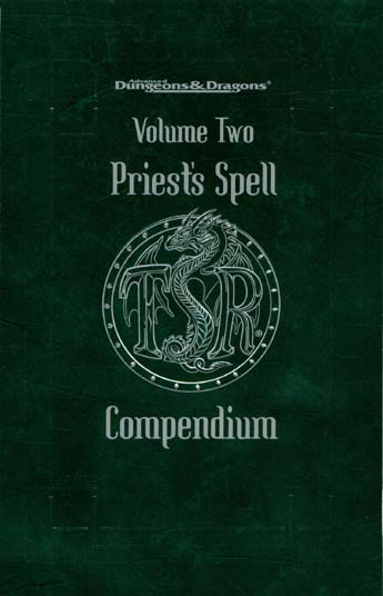 Item Code: #11421 Title: Priest's Spell Compendium Volume Two Type: Accessory Published: 1999 Format: 288-page perfect-bound book |
