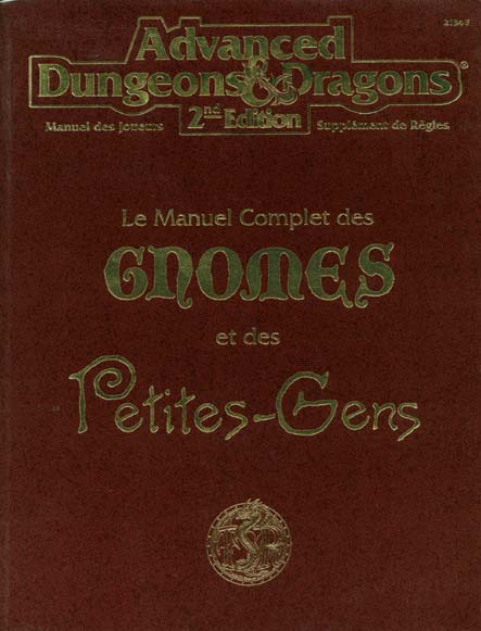 Item Code: #2134F (MJSR9 - nominal) Title: Le Manuel Complet des Gnomes et des Petites-Gens Type: Accessory Author: Douglas Niles Published: 1995 Format: 126-page perfect-bound book |