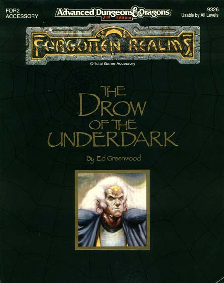 Item Code: #9326 (FOR2) Title: The Drow of the Underdark Type: Accessory Author: Ed Greenwood Published: 1991 Format: 128-page perfect-bound book |