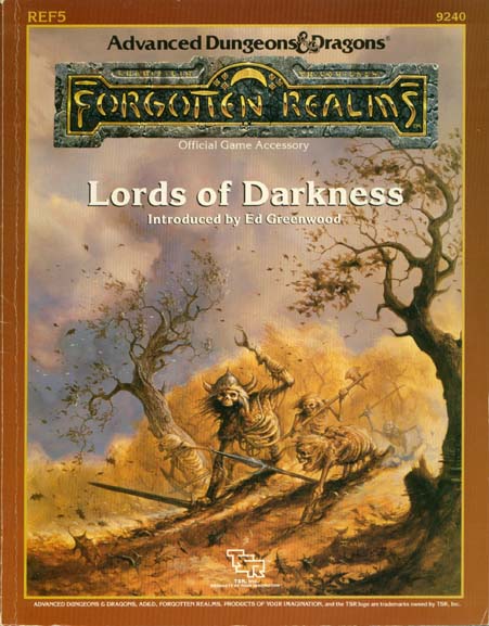 Item Code: #9240 (REF5) Title: Lords of Darkness Type: Accessory Author: Ed Greenwood (introduction) Published: 1988 Format: 96-page perfect-bound book |