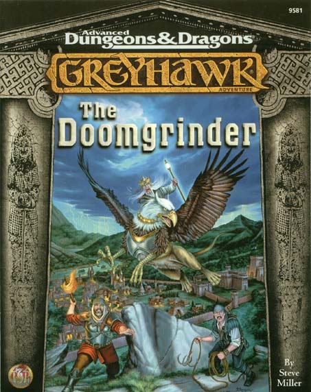 The Doomgrinder, a mysterious stone windmill many leagues east of the City of Greyhawk, has for centuries been a source of rumors, frustration and fear. The rumors say that vast treasures are stored inside - all cursed. The frustration belongs to hundreds of adventurers who over the years have attempted to enter the windmill and failed. The fear is felt by those who believe the world will end when the stone sails of the Doomgrinder turn again. In the City of Greyhawk, powerful spellcasters read bad omens for the future, and the Doomgrinder is part of them. Some see no future at all, good or bad. In this GREYHAWK adventure, a group of brave heroes may finally learn the truth about the Doomgrinder. Designed for characters of levl 4 through 8 but adaptable to any level, the adventure can be played on its own or as the climax to the Lost Tombs adventure series. It also offers countless oppurtunities for spin-off adventures, potentially providing the foundation for entirely new campaign directions, and months of exciting game sessions. |