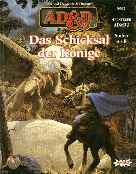 Item Code: #8002 (AD&D2) Title: Das Schicksal der Könige Type: Adventure Author: Stephen Bourne Published: 1998 Format: 64-page perfect-bound book, single-page full-color map |