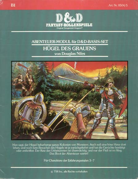 Item Code: #8504/5 (B1) Title: Hügel des Grauens Type: Adventure Author: Douglas Niles Published: 1983 Format: 32-page book w/tri-fold cover |