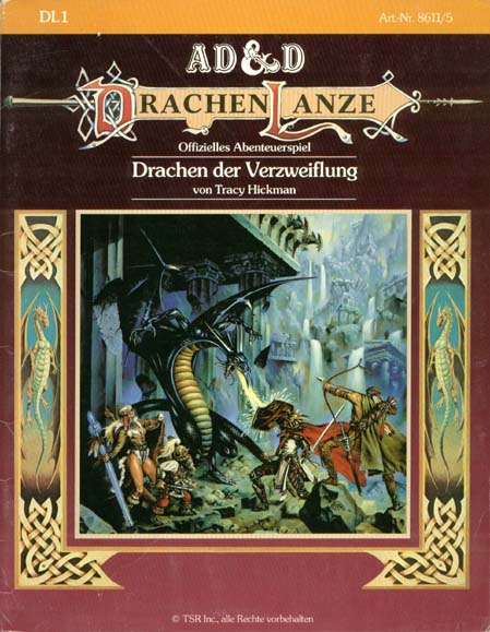 Item Code: #8611/5 (DL1) Title: Drachen der Verzweiflung Type: Adventure Author: Tracy Hickman Published: 1985(?) Format: 36-page book w/tri-fold cover |