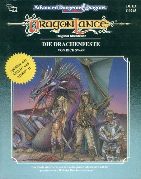 Item Code: #G9245 (DLE3) Title: Drachenfeste Type: Adventure Author: Rick Swan Published: 1991 Format: 96-page book w/tri-fold cover, fold-out map |